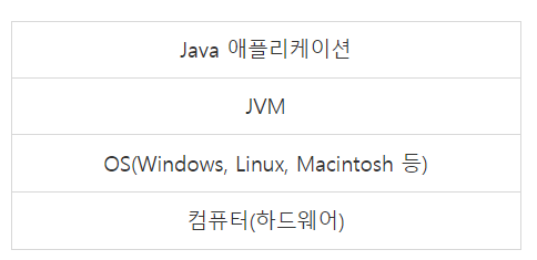 - 자바 응용프로그램의 실행을 위해선 반드시 JVM을 거쳐야 함