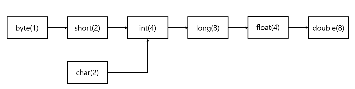ex) byte 타입 (1 byte) -> int 타입 (4 byte)