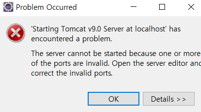 지금까지 Tomcat 오류가 뜨는 이유로는 보통 Tomcat의 중복 실행이거나, port 설정에 문제가 있었다.