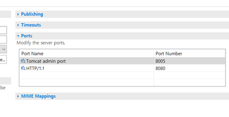 2) 포트에 8005와 8080으로 되어있는지 확인, 없으면 추가